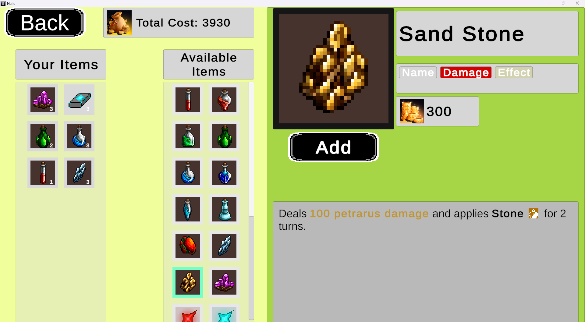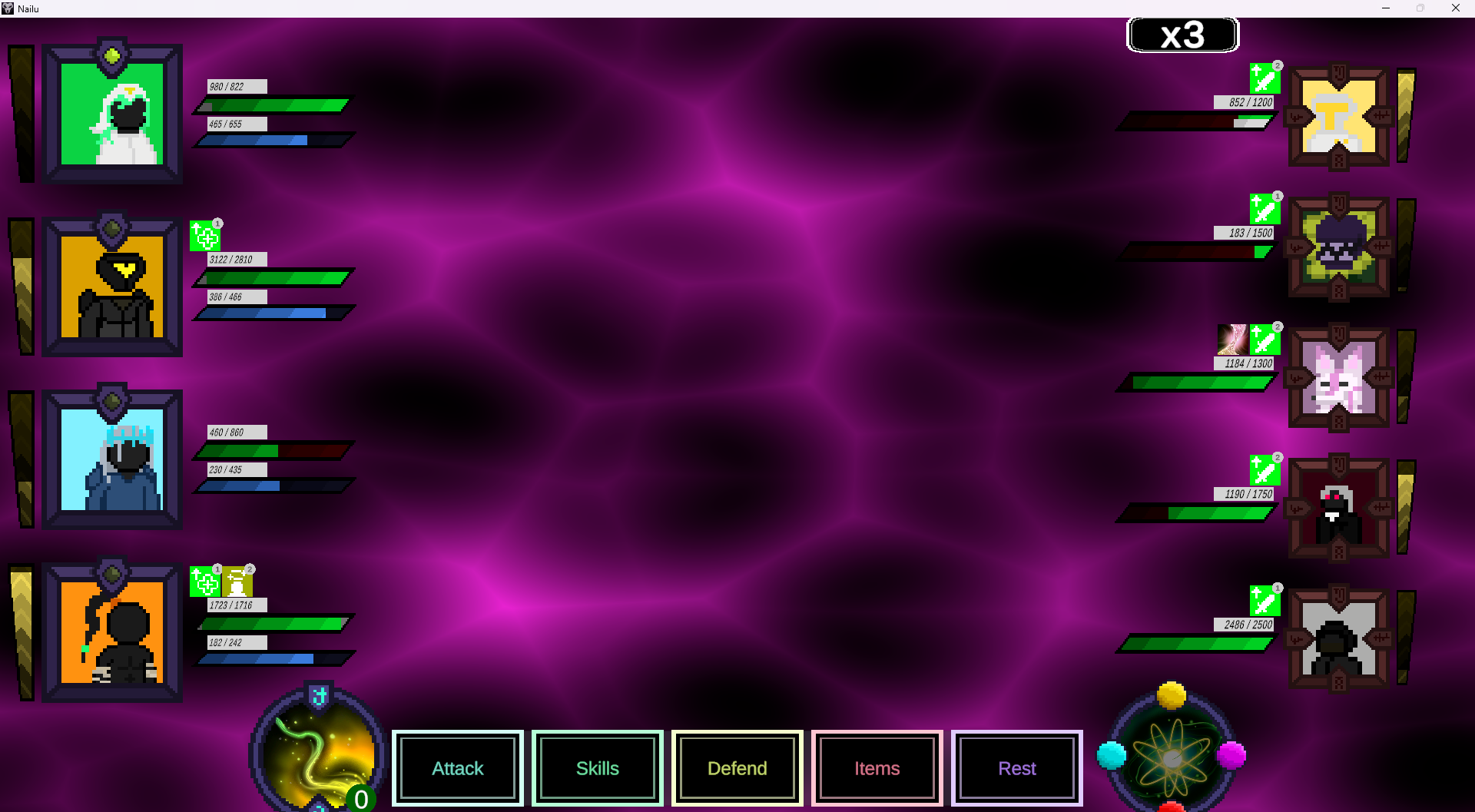 Esta es una pequeña Demo de un futuro juego, Nailu, un RPG de Estrategia por Turnos para un jugador, centrado en la creación de equipos y la diversidad de estrategias. El juego final presentará una historia lineal en el mundo de Oberion, el mundo donde se desarrolla este título.