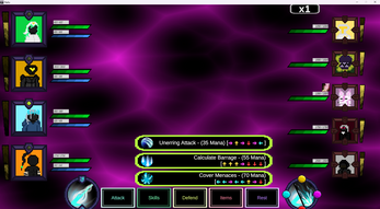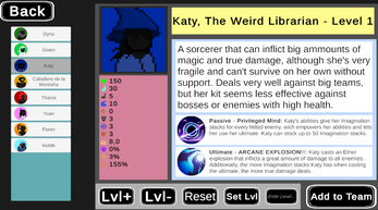 The Demo only shows a prototype of the combat system, where 2 teams (Player vs CPU) fight against each other with unique characters and enemies, letting the player choose between different strategies and character compositions. There's also an Equipment and Inventory system to expand the different options of the player. This Demo has a fraction of the full game characters and a very small quantity of the enemies from the planned full game. There are some mechanics that weren't implemented as well.